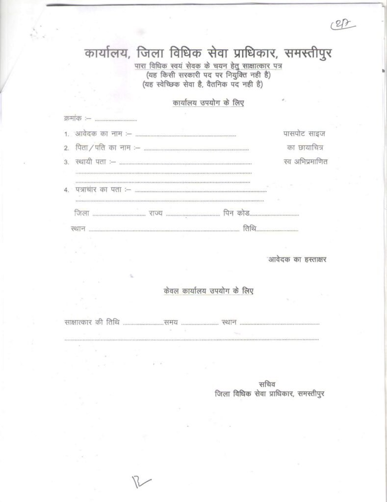| पद का नाम | पारा विधिक स्वयं सेवक (PLV) |