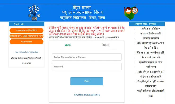 Bihar Murgi Farm Yojana 2026: Important Links